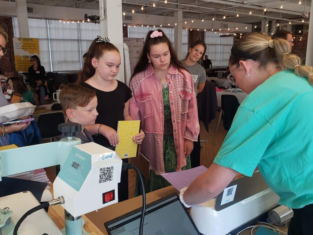 The Connect & Create with the AHCCS Maker Express event held in Reading featured activities, innovative technologies, food, and prizes. Families were invited to Goggleworks to learn about the technologies in the Maker Express including AHCCS’s Glowforge, 3D Printer, Poster Printer, and Cricut Machines. Students and their family members created decals on notebooks, draw-string bags, and hats with the Cricut Machine, pencil clips on the 3D Printer, and engraved pencils and/or pens on the Laser Printer.